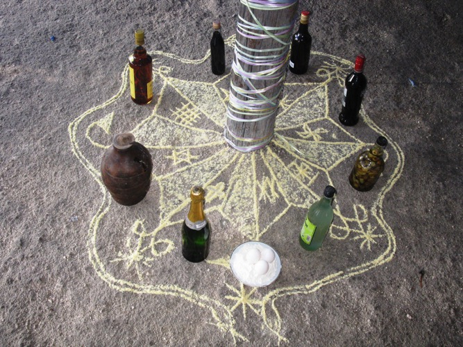 allez répandre les ingrédients végétaux sur le seuil de la porte principale